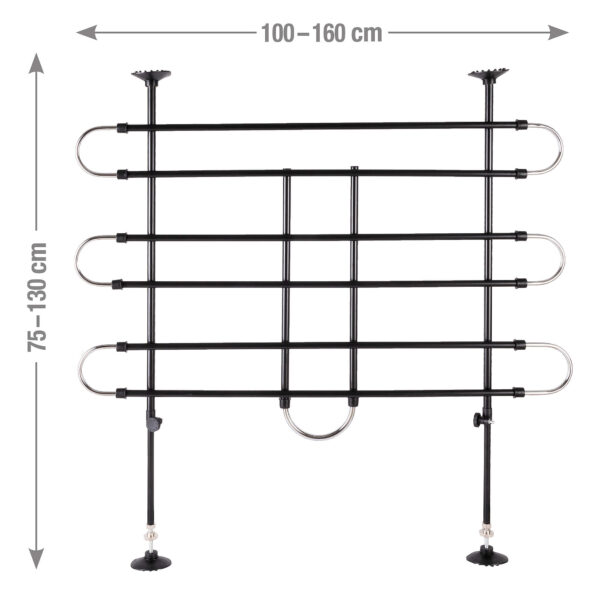 Elle est réglable, en continu, en hauteur et en largeur et s’adapte ainsi parfaitement à votre véhicule. La grille peut être montée facilement et rapidement, sans outil.